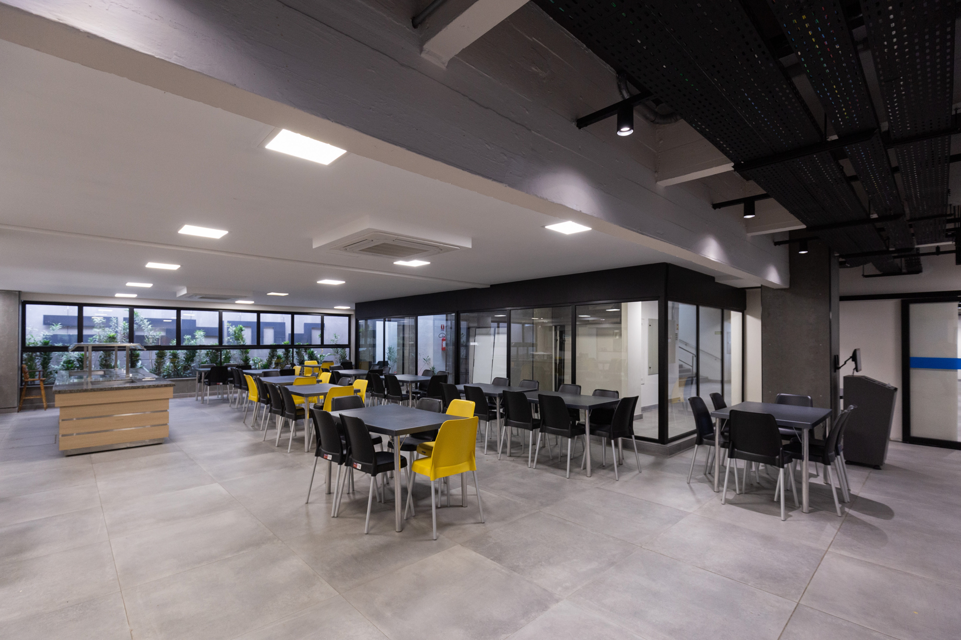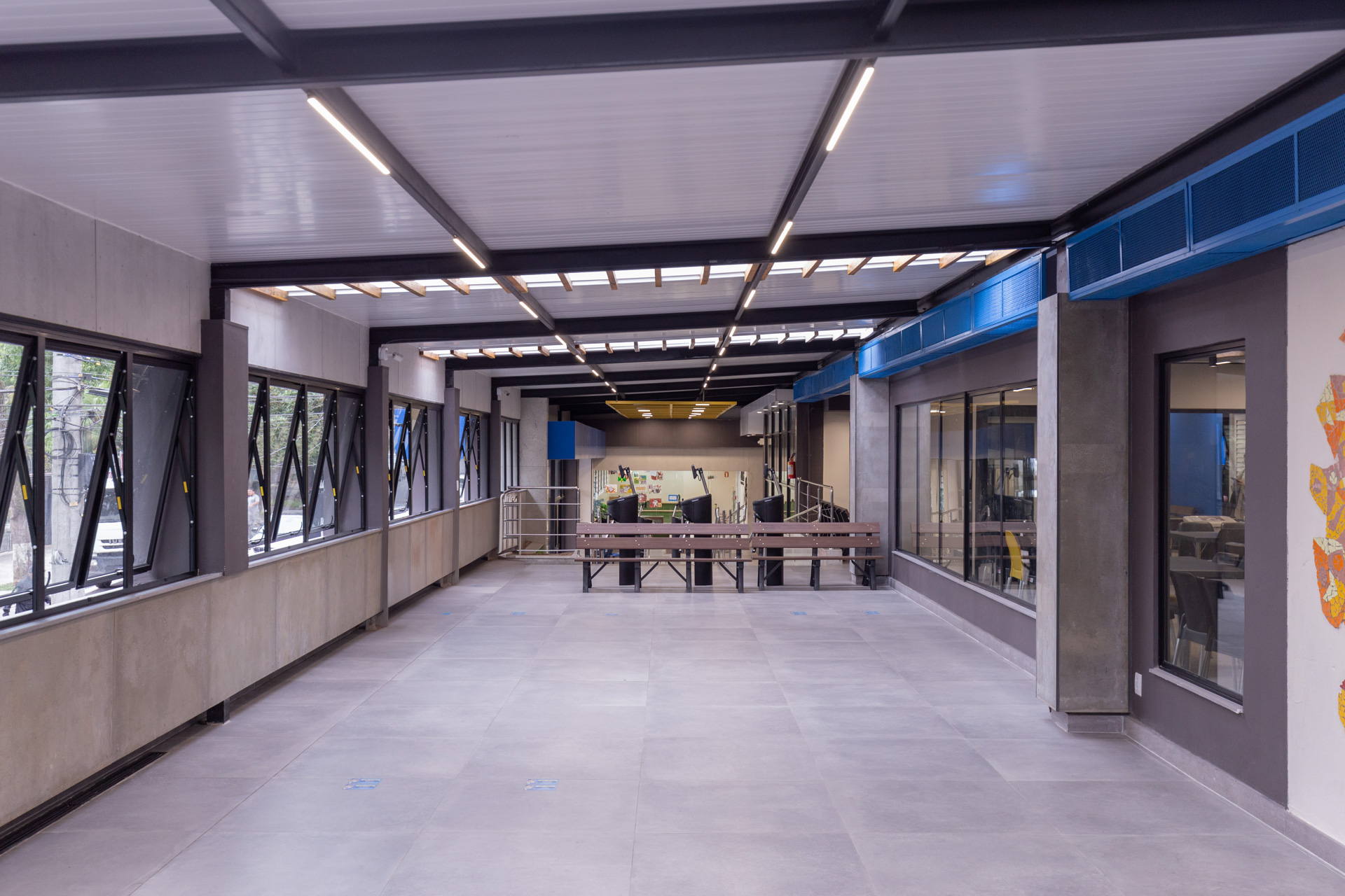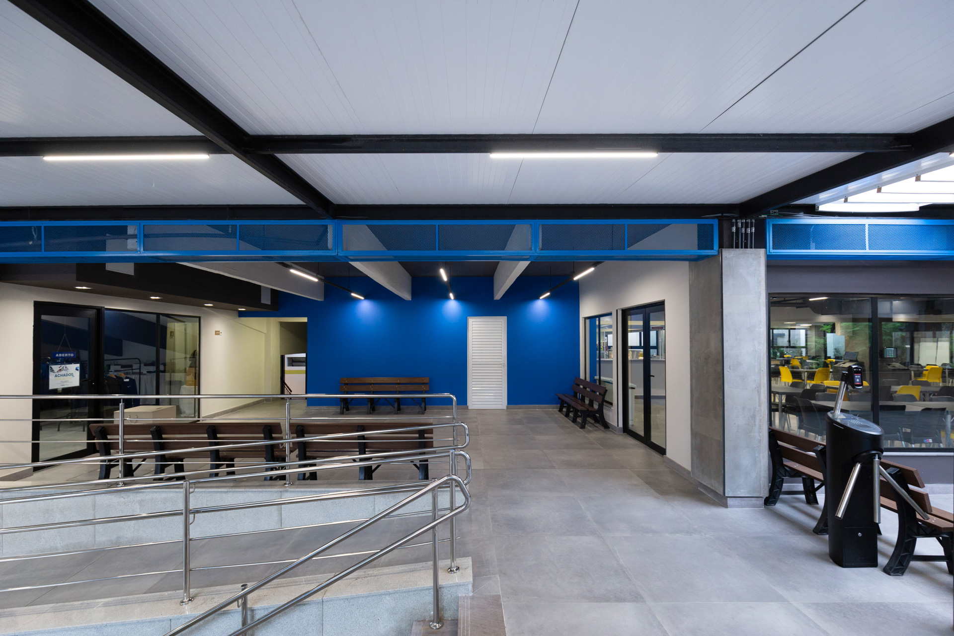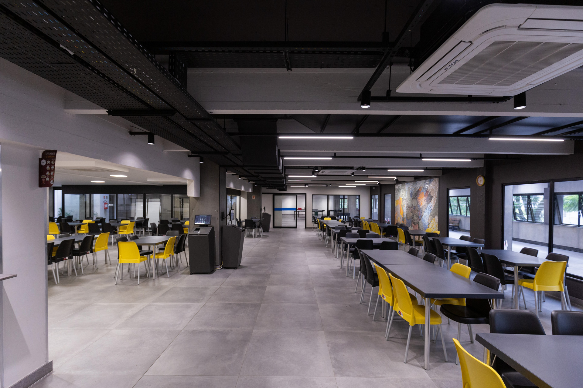 A infraestrutura contemplou novos sistemas de climatização, quadro elétrico para a cozinha, iluminação embutida, redes hidráulicas, além da instalação de catracas, guarda-corpos, claraboias, louças e metais sanitários. Na fachada, foram aplicadas esquadrias de vidro temperado com estrutura metálica, brises, marquises em ACM azul, painéis em ACM madeirado, fechamento em Viroc e envelopamento da estrutura existente.