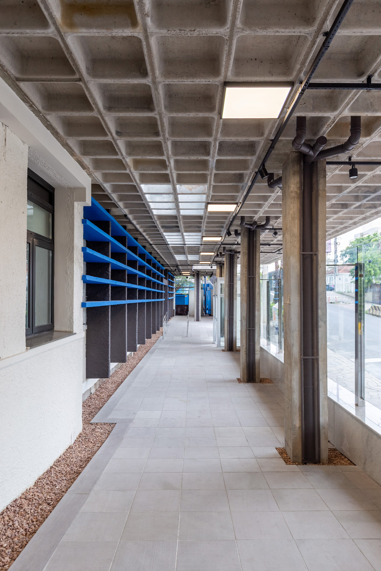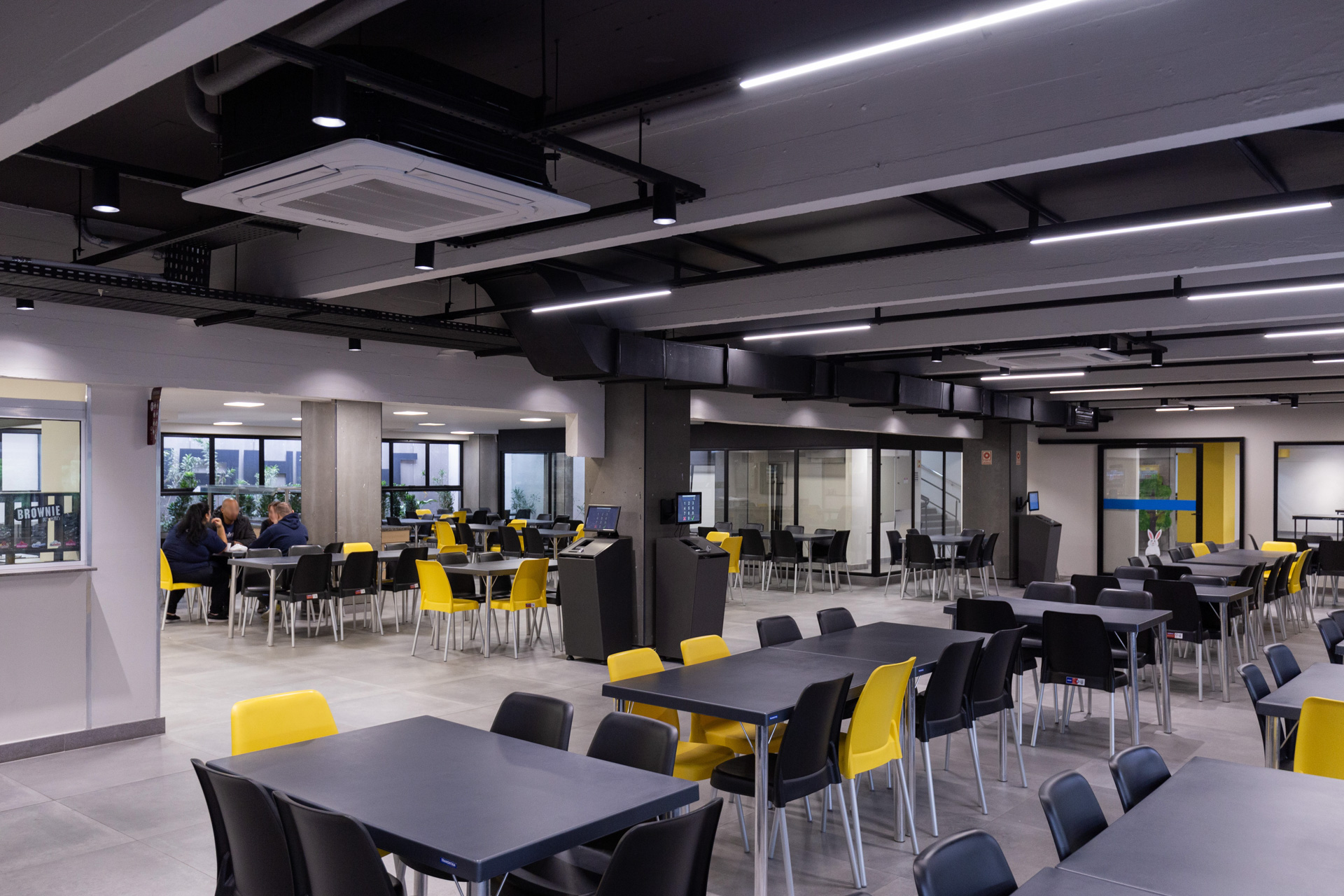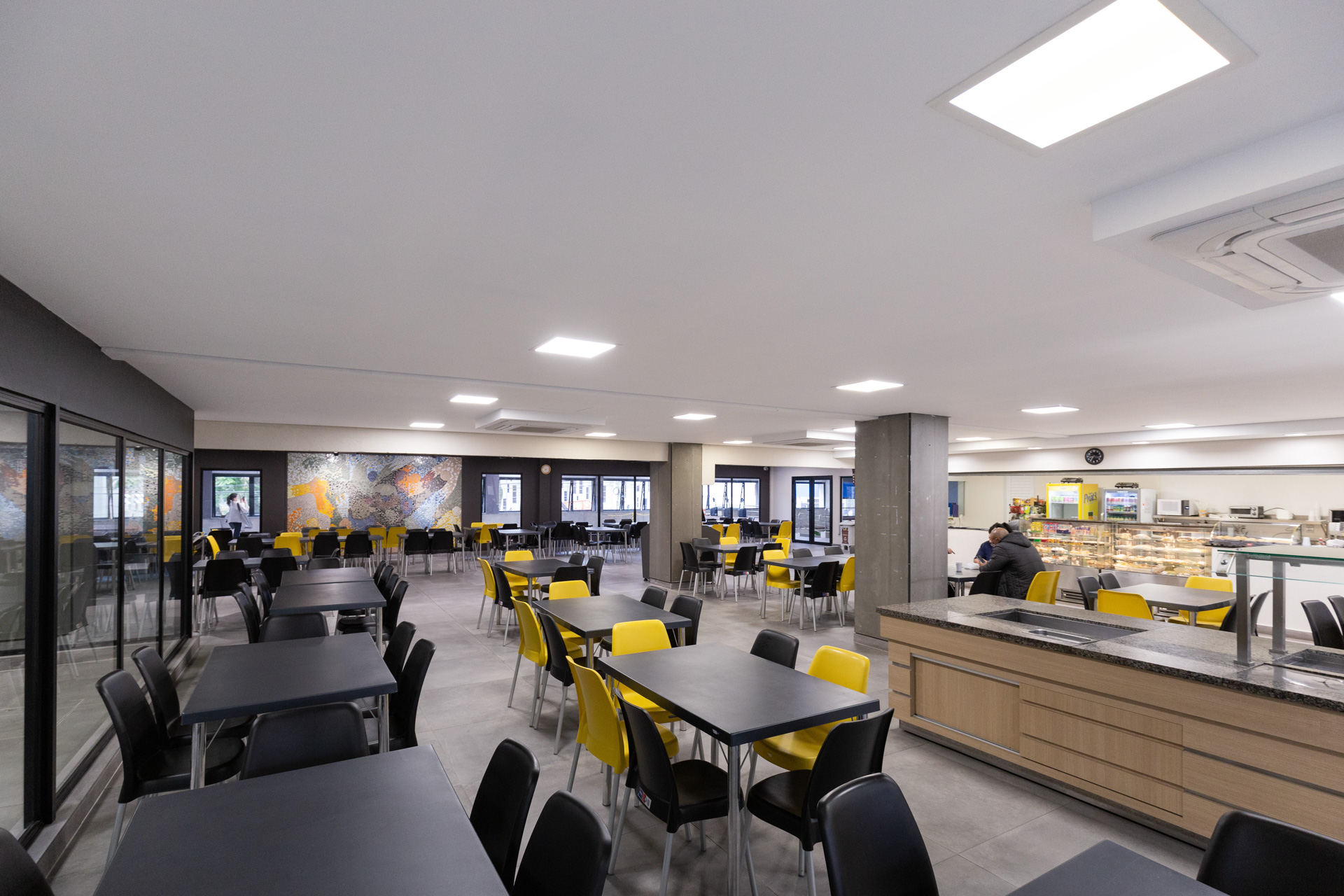 A infraestrutura contemplou novos sistemas de climatização, quadro elétrico para a cozinha, iluminação embutida, redes hidráulicas, além da instalação de catracas, guarda-corpos, claraboias, louças e metais sanitários. Na fachada, foram aplicadas esquadrias de vidro temperado com estrutura metálica, brises, marquises em ACM azul, painéis em ACM madeirado, fechamento em Viroc e envelopamento da estrutura existente.