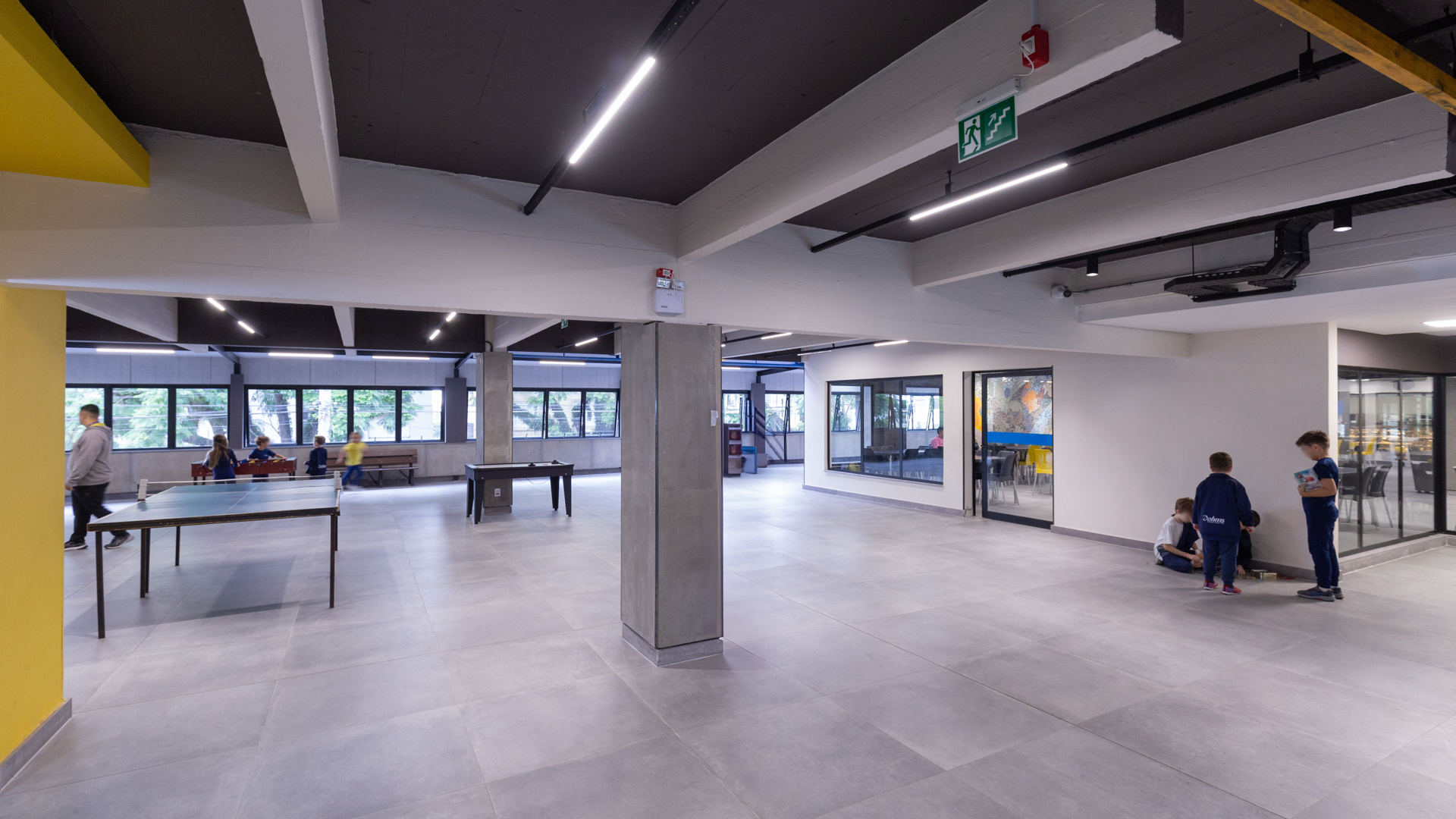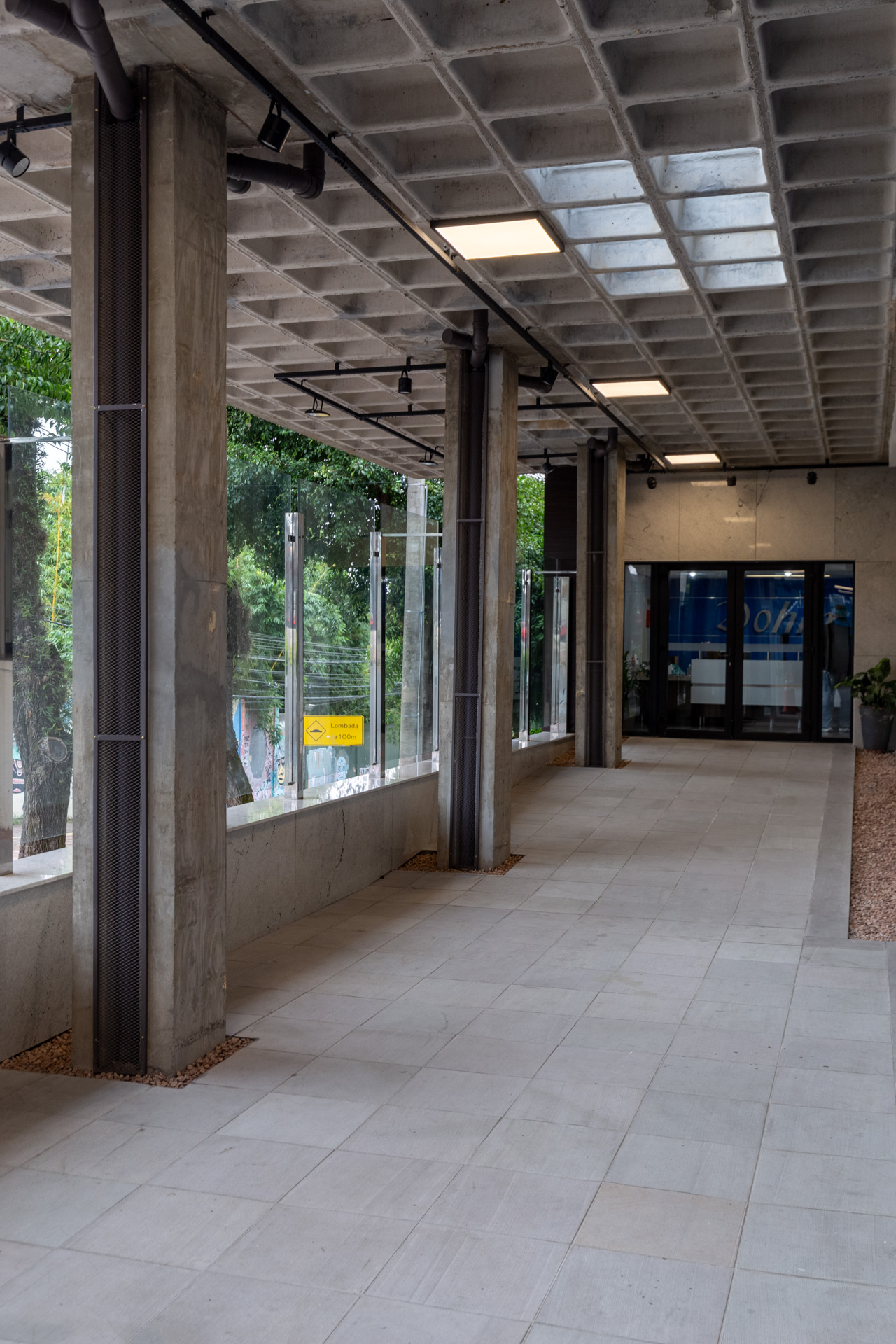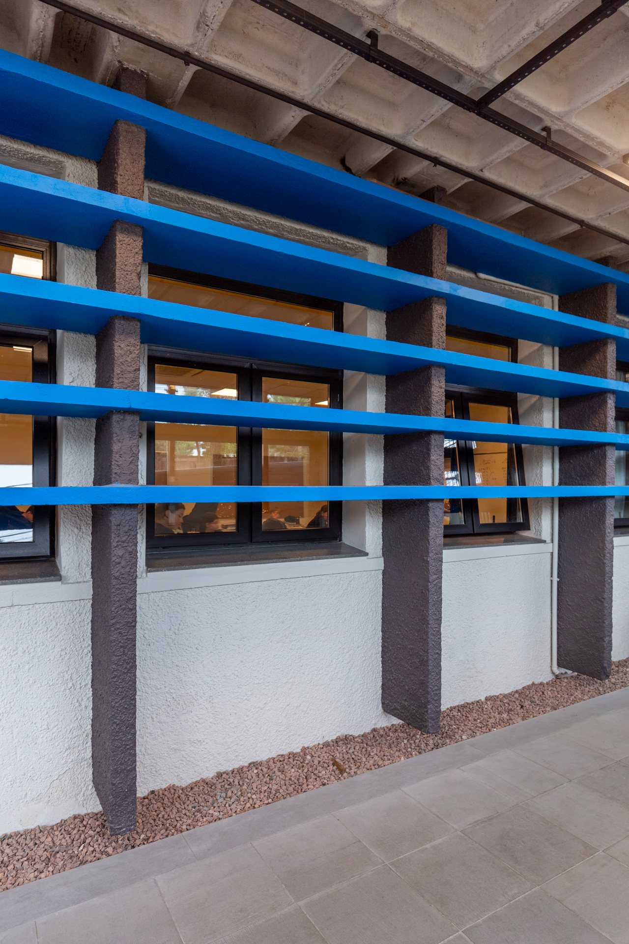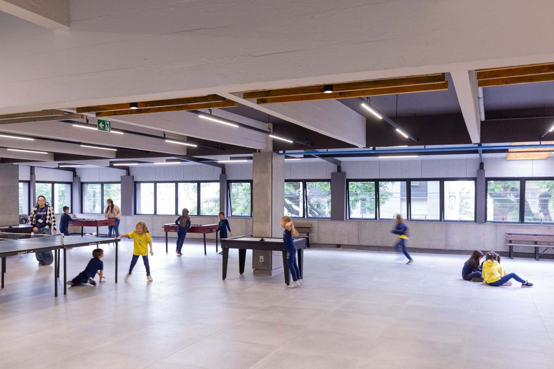A infraestrutura contemplou novos sistemas de climatização, quadro elétrico para a cozinha, iluminação embutida, redes hidráulicas, além da instalação de catracas, guarda-corpos, claraboias, louças e metais sanitários. Na fachada, foram aplicadas esquadrias de vidro temperado com estrutura metálica, brises, marquises em ACM azul, painéis em ACM madeirado, fechamento em Viroc e envelopamento da estrutura existente.